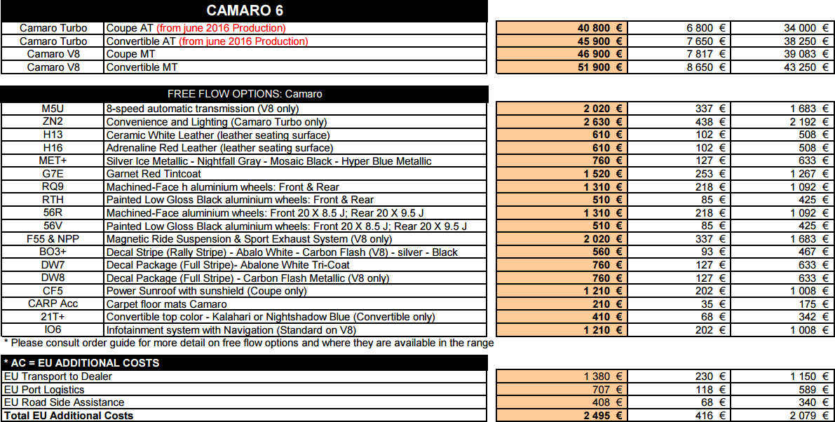 Ca y est, ils sont tout chaud, ils sortent du four. Voici les infos concernant la camaro 6 en France :