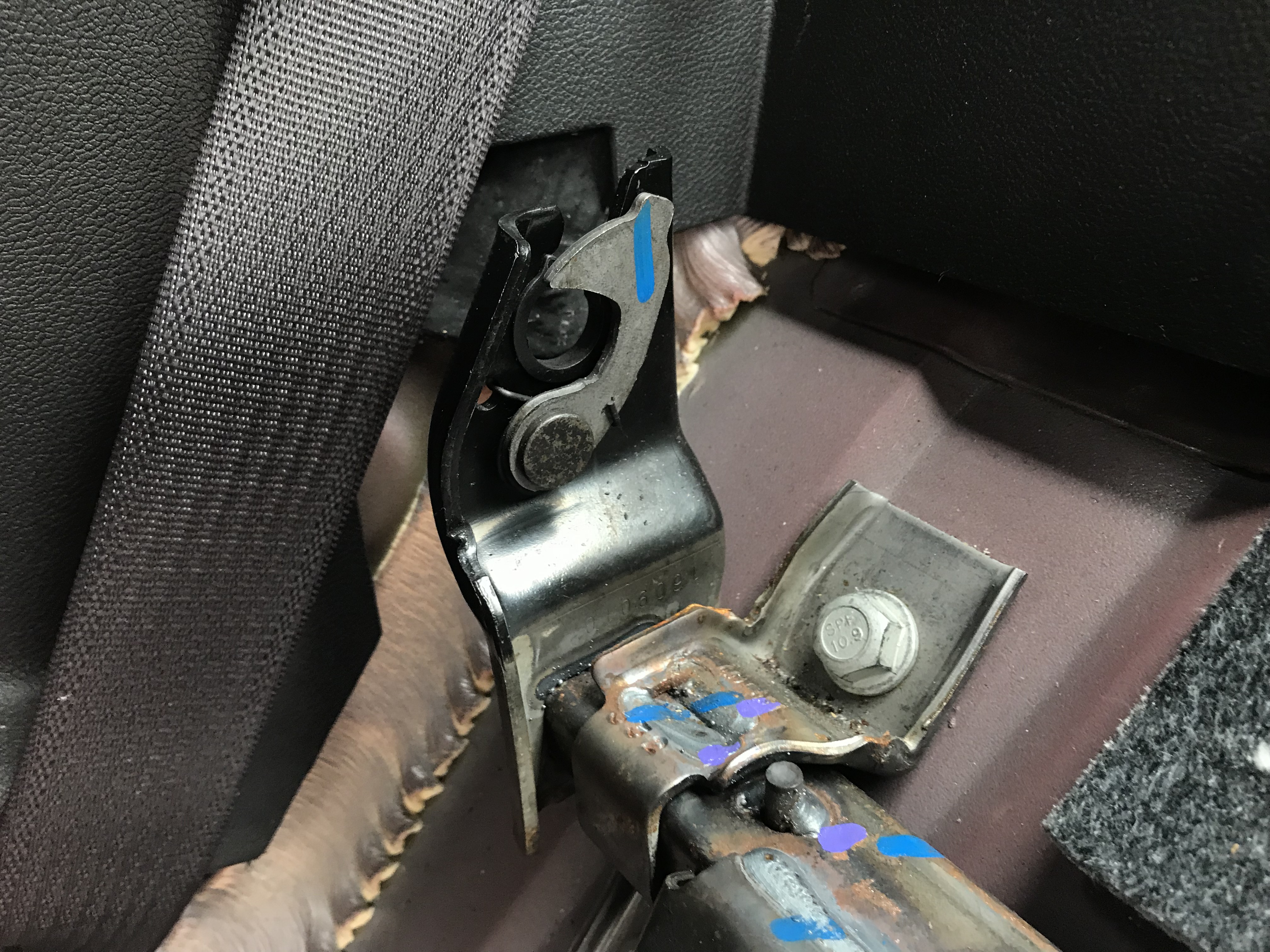 Pour cela, de chaque coté de la voiture il faut pivoter les parties acier (la ou il y a le petit trait bleu) pour pouvoir les dégager la banquette.