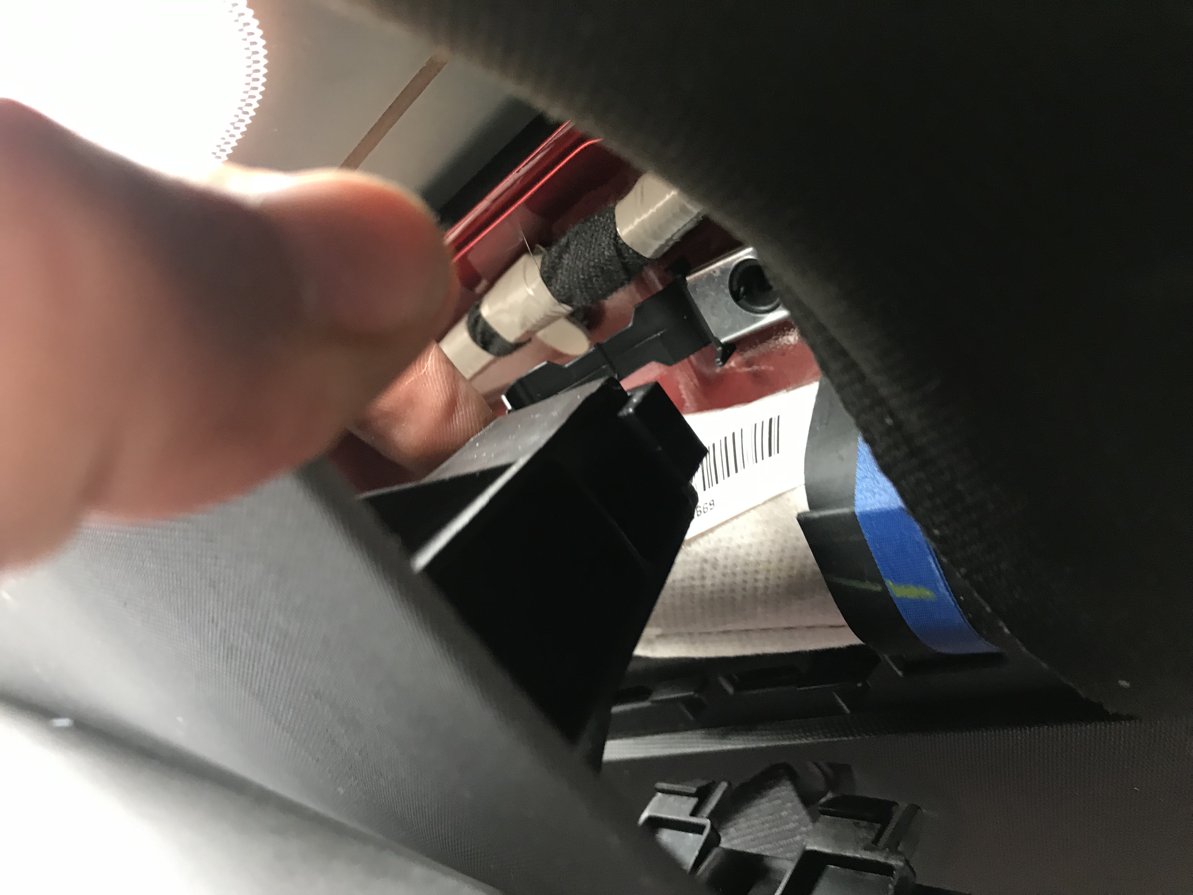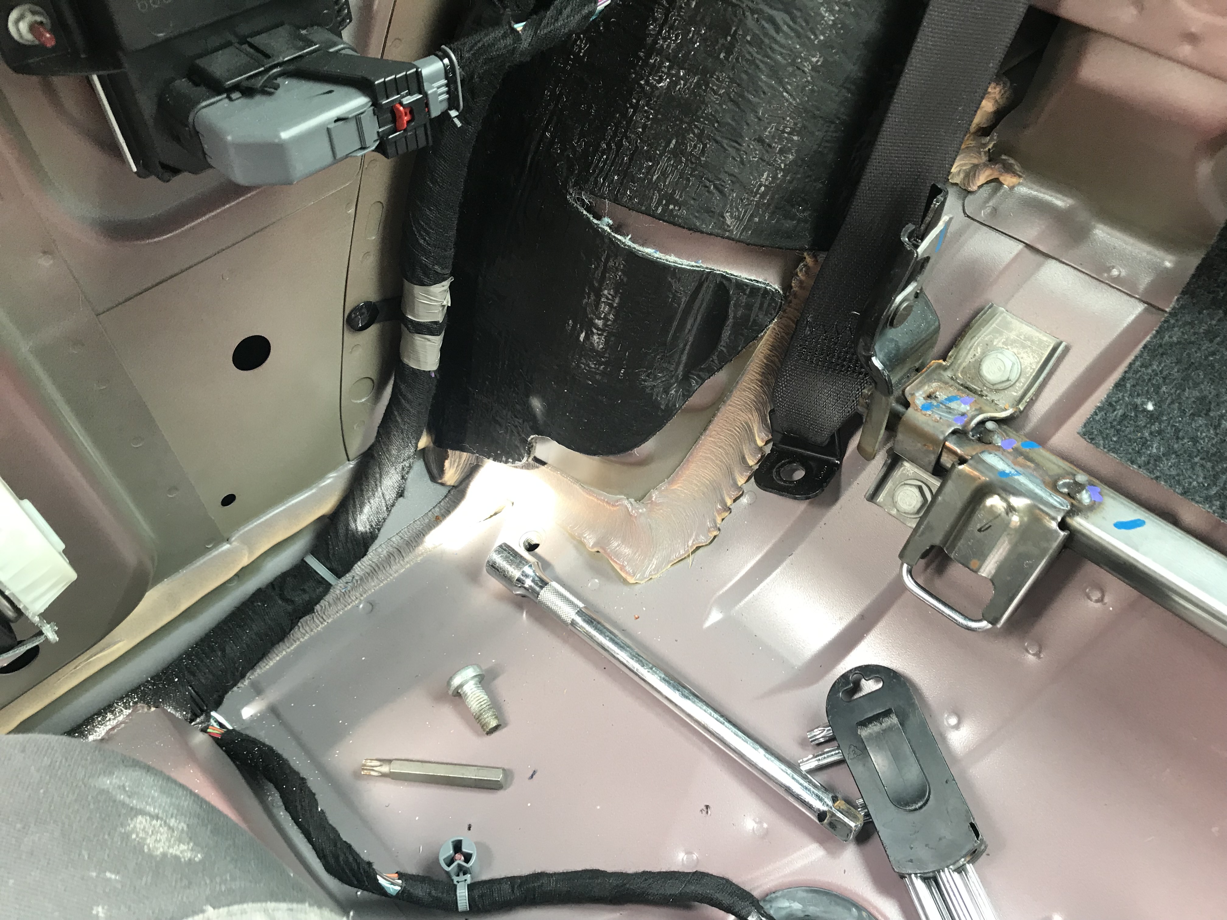 Pour pouvoir dégager le cache, il faut également démonter le support de la ceinture arrière à l'aide d'un embout T50
