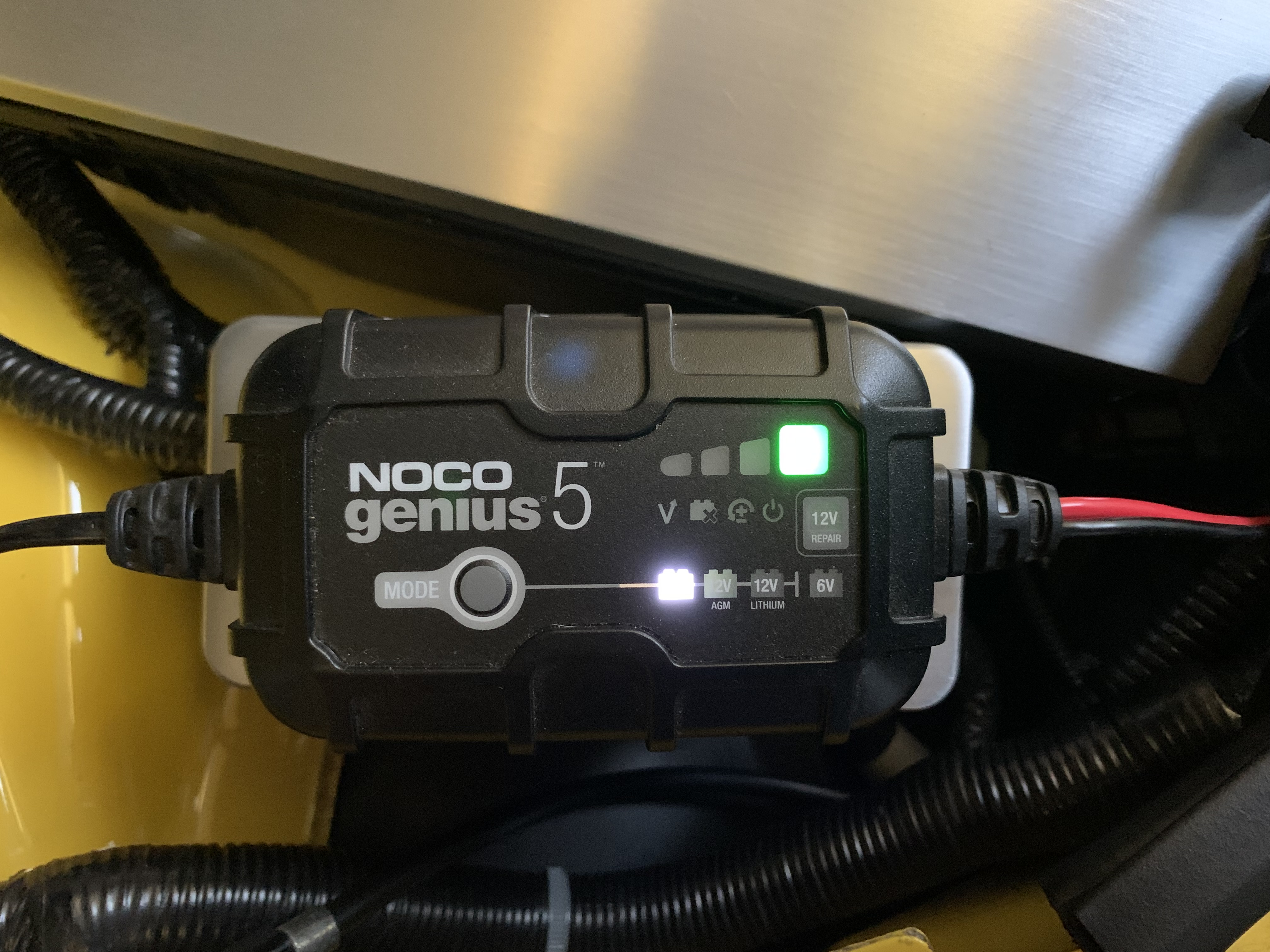 En chargeurs, j’en possède 3 assez compacts qui sont également fournis avec plusieurs moyens de raccordement, l’un d’eux possède même une fonction de régénération de batterie en envoyant des impulsions pour désulfuration, ils sont assez intéressants en soit, mais ils ont tous une même spécificité que tu devrais contrôler sur le tiens, c’est que régulièrement, après quelques jours de branchement, ils se mettent en mode pause, le maintien de charge n’est donc plus assuré jusqu’à ce que j’appuie de nouveau sur le bouton de départ de charge, je pense que ça fait d’abord charge lente et qu’il faut de nouveau lancer le processus pour activer le maintien de charge, contrôle sur le tiens après une semaine de branchement, on ne sait jamais.