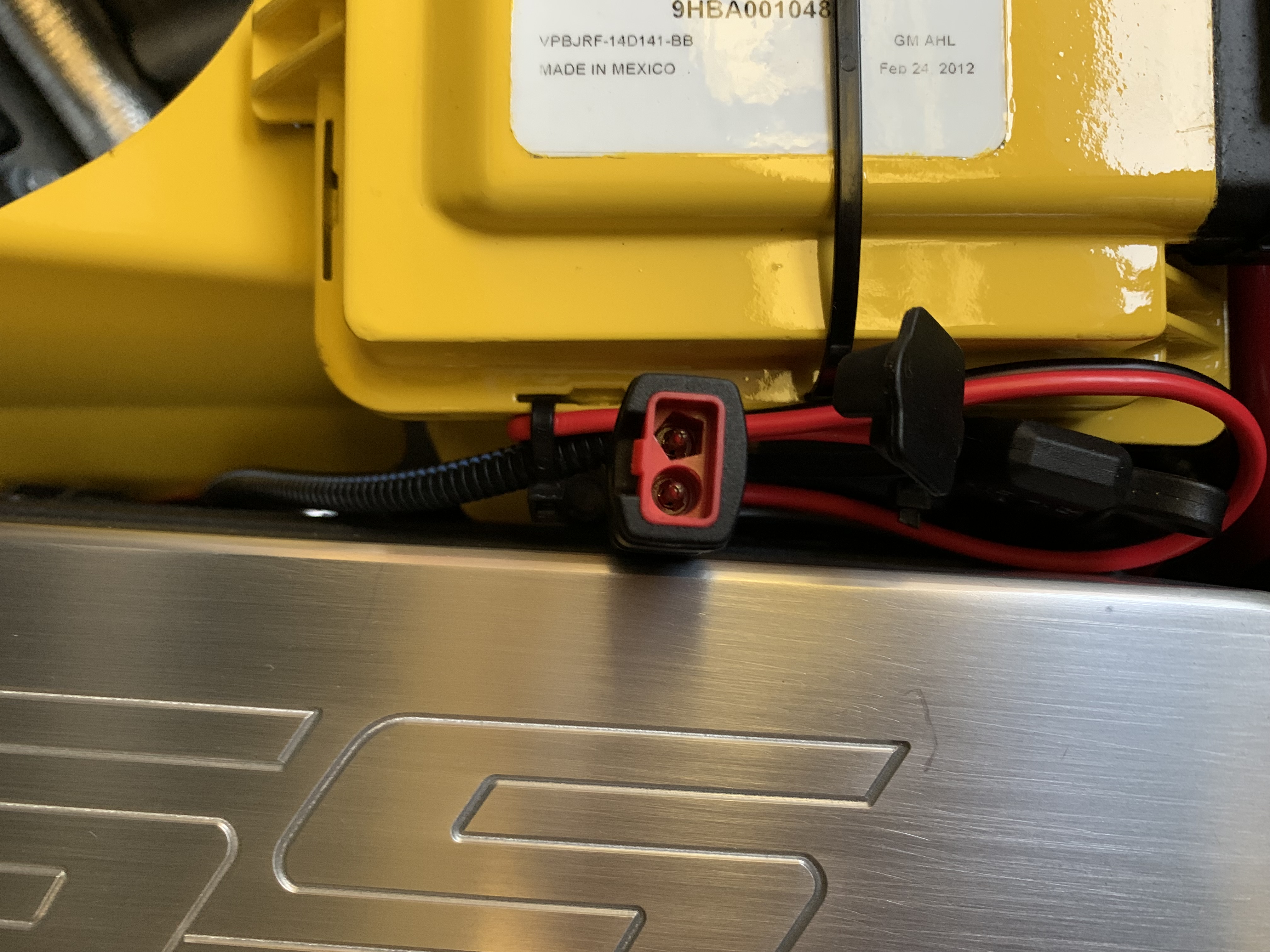 De mon côté je ne l'ai pas installé en fixe (de cette façon je peux aussi charger d'autres véhicules) en effet en option vous pouvez acheter des cables en plus, ce qui permet d'équiper à votre guise vos autres véhicules, j'ai donc installé un cablage dans la camaro , branché directement sur le gros cable plus de la boite a fusible (c'est le premier, celui qui est vissé sur le devant de la boîte) et faire de même sur la caisse pour le câble de masse.