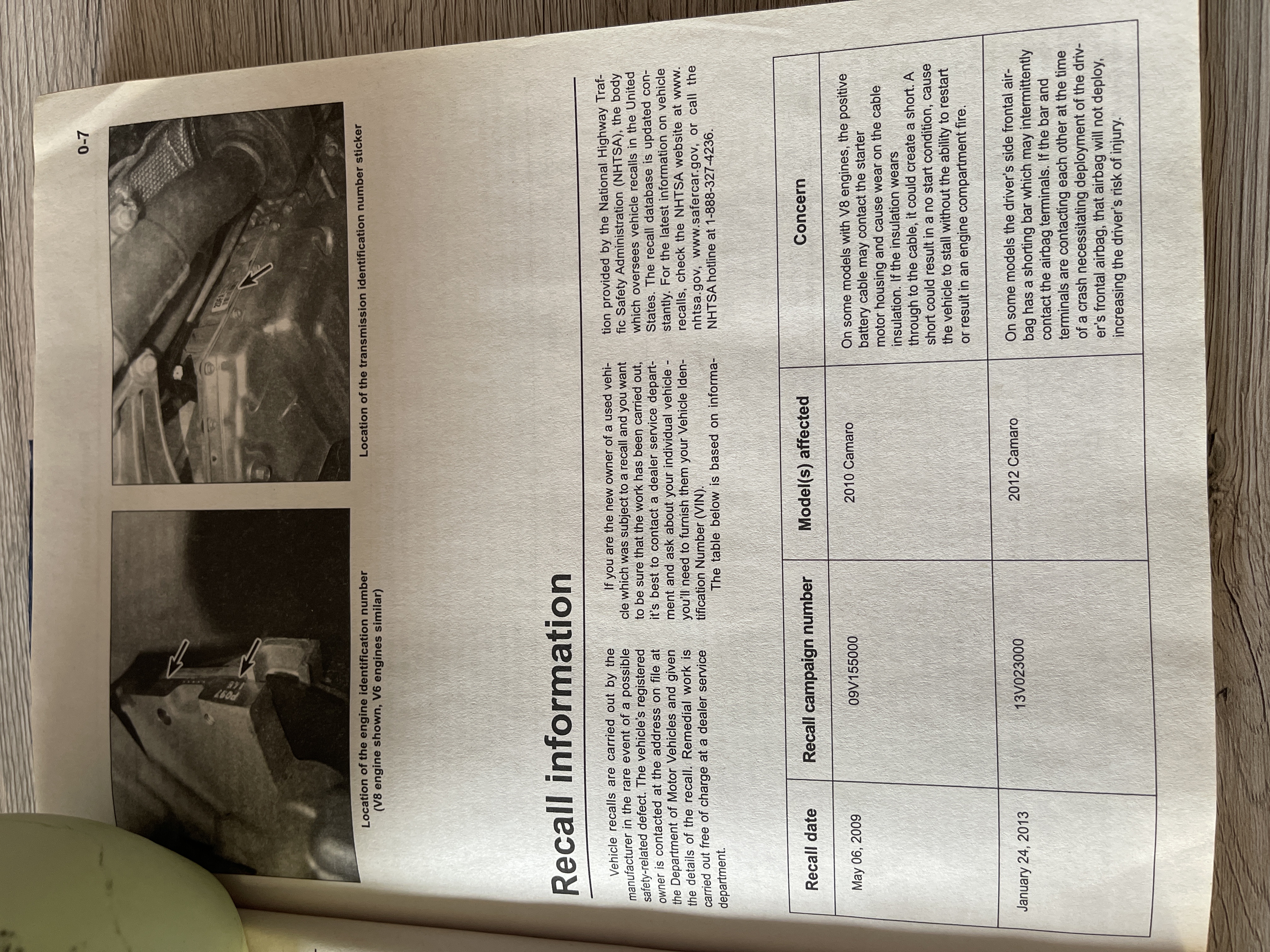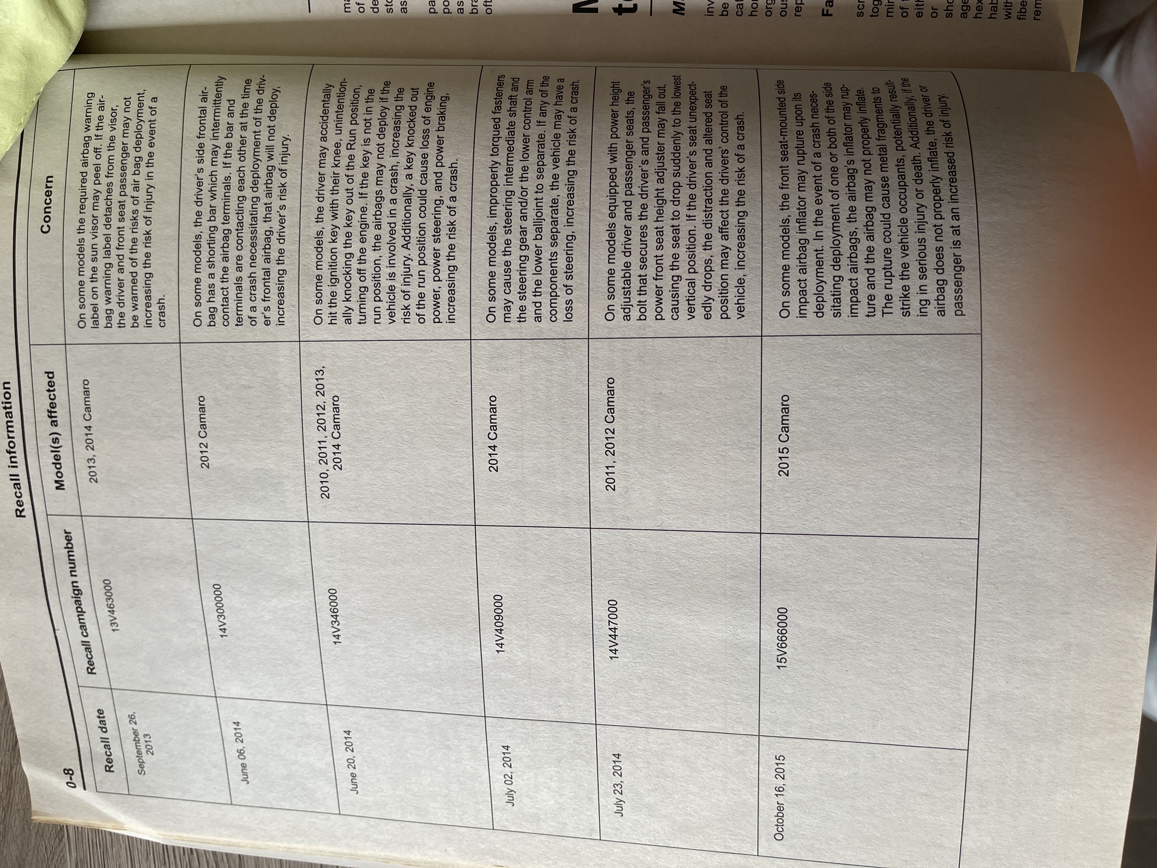 en consultant mon Haynes pour essayer de trouver la référence d’un tube pour un membre du forum, je suis tombé sur une des premières pages sur la liste de rappels qu’ont eu les Gen5 jusqu’au jour de publication du livre (au plus tôt 2015), je vous met ci-dessous une photo de cette liste qui mentionne la date des rappels et les modèles concernés.