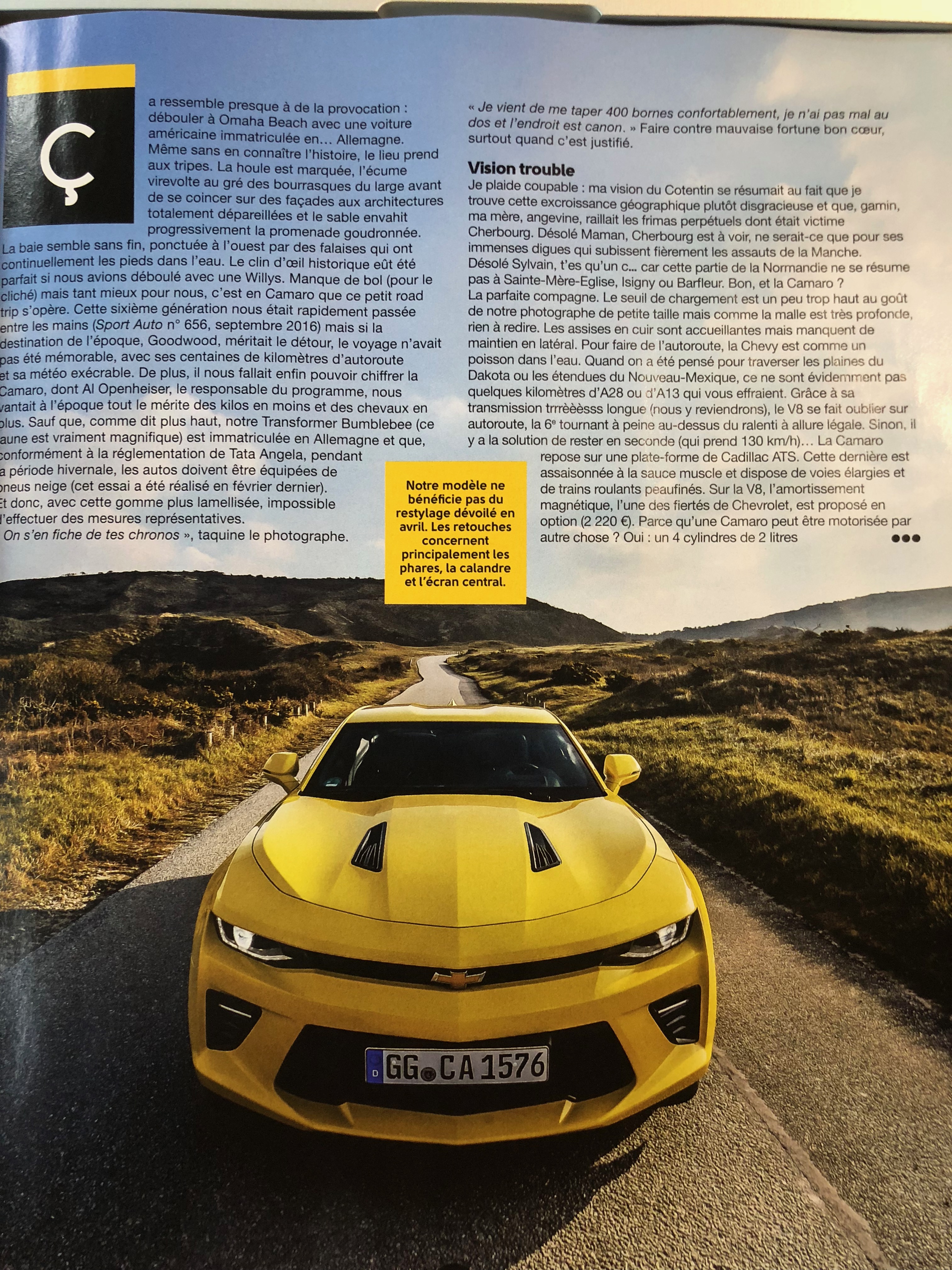 Je vous met ici l'article paru dans le Sport auto de juin sur la Camaro 6 pour ceux que ça intéresse... Enjoy !!