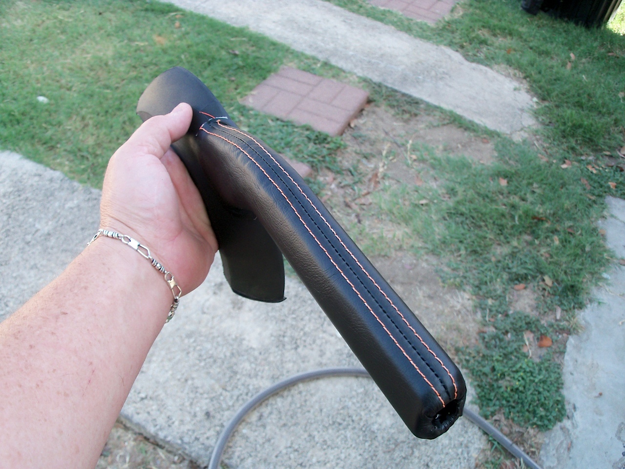frein a main avec le plastique d´origine garni (voir photo)avec du cuir et couture blanche ou comme le mien .