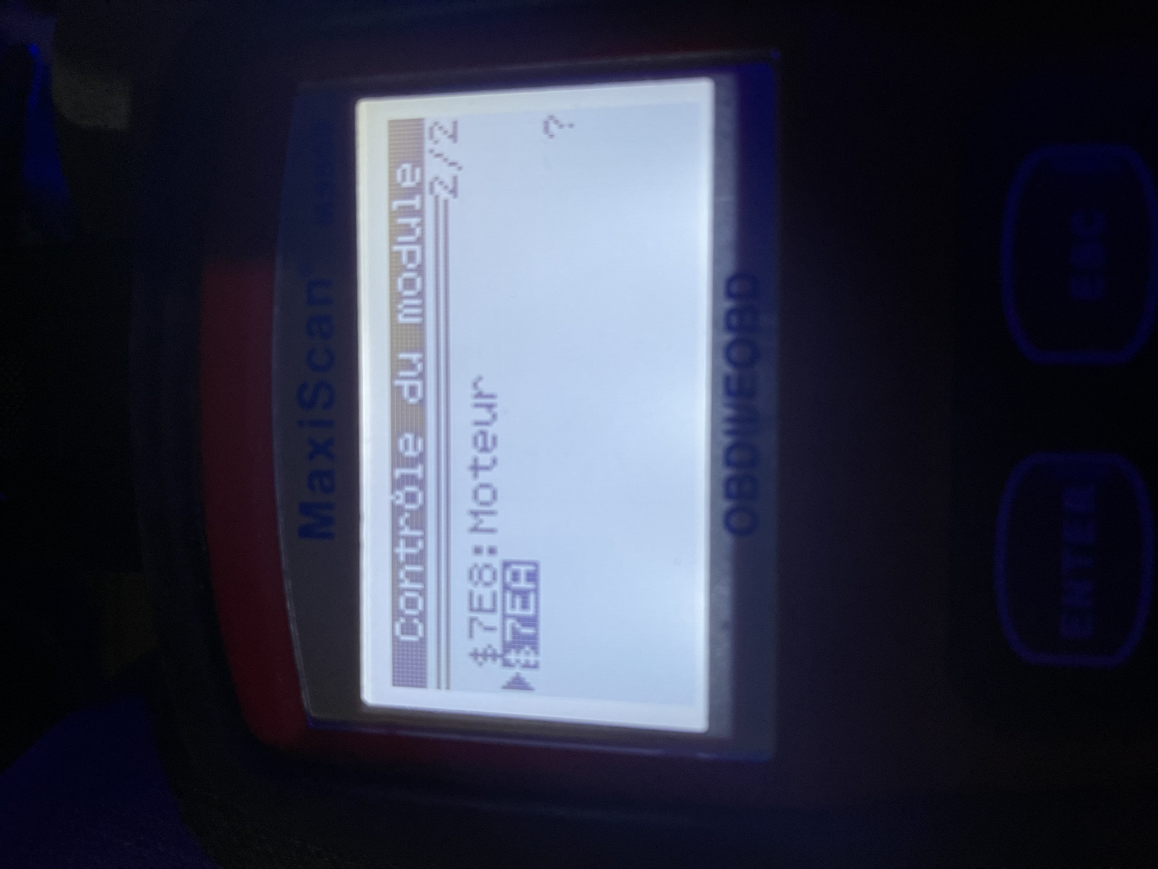 et suis descendu brancher ma caisse sur le lecteur de codes que j’ai, résultat: 0 codes… (juste 2 séries qui ne correspondent pas à des codes d’erreur sur la deuxième photo et dont je ne sait pas à quoi ils correspondent) tant mieux mais ça ne me dit toujours pas de quoi ça pourrait venir, bon, là période pourrait jouer avec le remplacement de mes clefs, alors je ne sait pas, je vais appeler le concessionnaire qui a effectué le rappel et lui poserait la question.