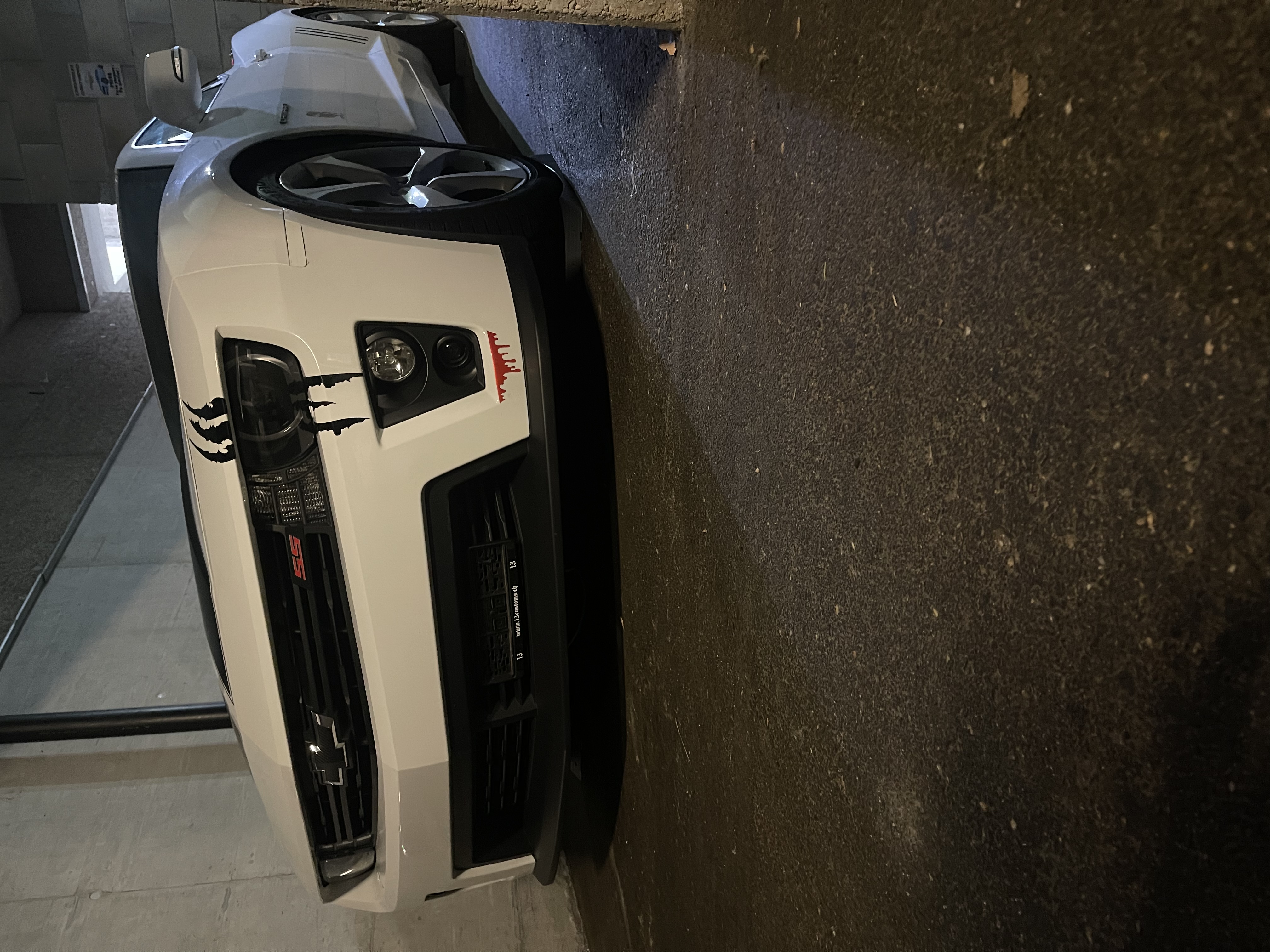Modele : Coupé BVA 6.2 SS blanche bandes noires "Corsica" 2013, bouclier avant ZL1, optimisation Hartt Racing, K&N Typhoon, Borla S-Type, H&R -4cm, DLW Uros K-S 9.5 et 10.5", Phantom grill.