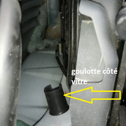 En fait ma goulotte n'est qu'un petit " tube " de 5 cm qui traverse la cloison , et le " sac " de la capote descend plus bas que la goulotte , en gros il faut que le sac soit un peu " rempli " pour que ça s'écoule de l'autre coté !