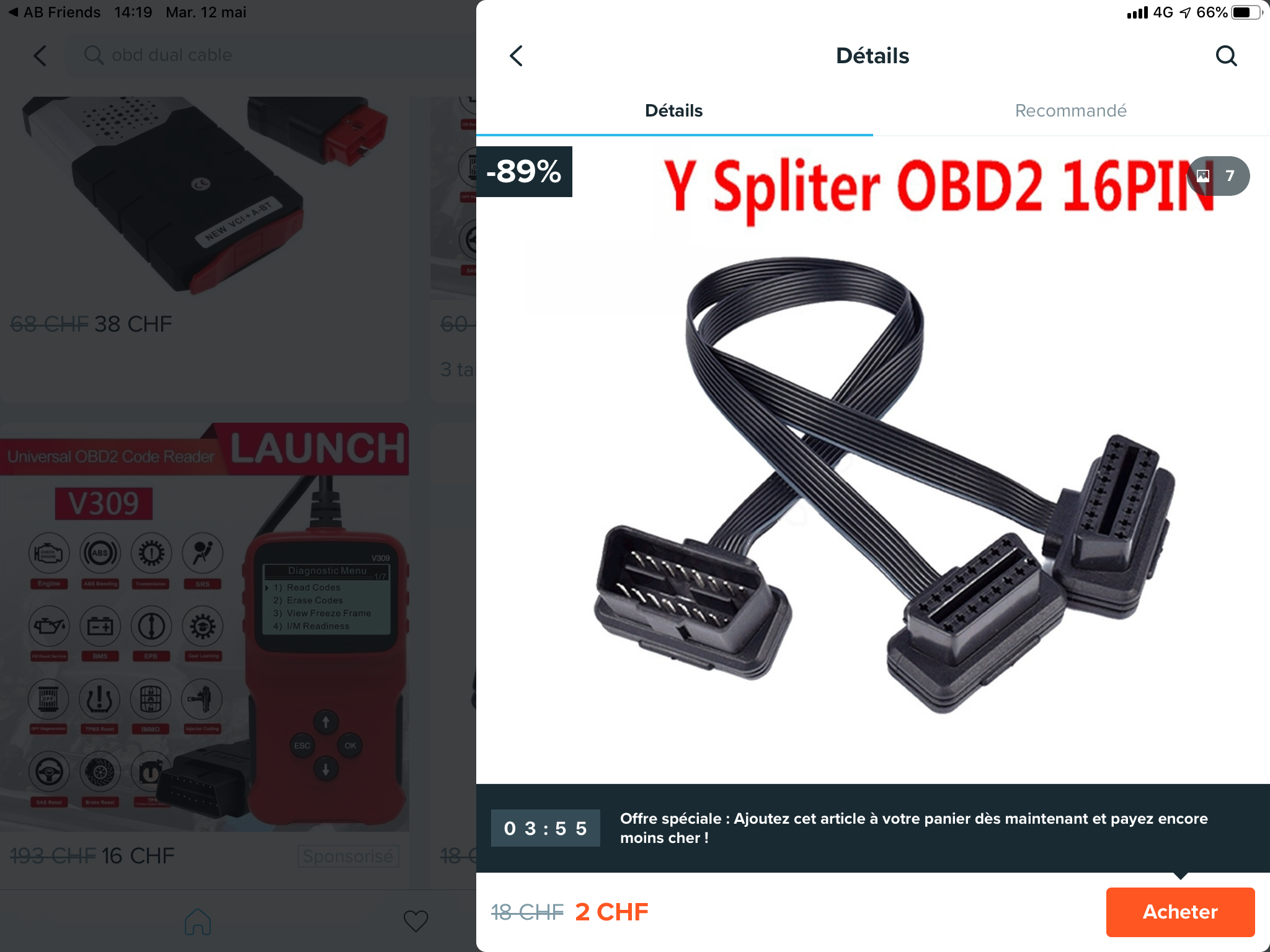 Je vais t’éviter un tour de rein copain :hug: voici le câble en question (que j’utilise depuis 6 ans dans ma Cam pour utiliser simultanément les diffèrent accessoires comme la Dashcam et un des trackers que j’ai, et que j’ai mis sur chacune des caisses de mes femmes (la aussi, Dashcam et tracker), mais il m’arrive de brancher le boîtier de diagnostique pour visionner en live les données comme la conso instantanée, accélération, etc...