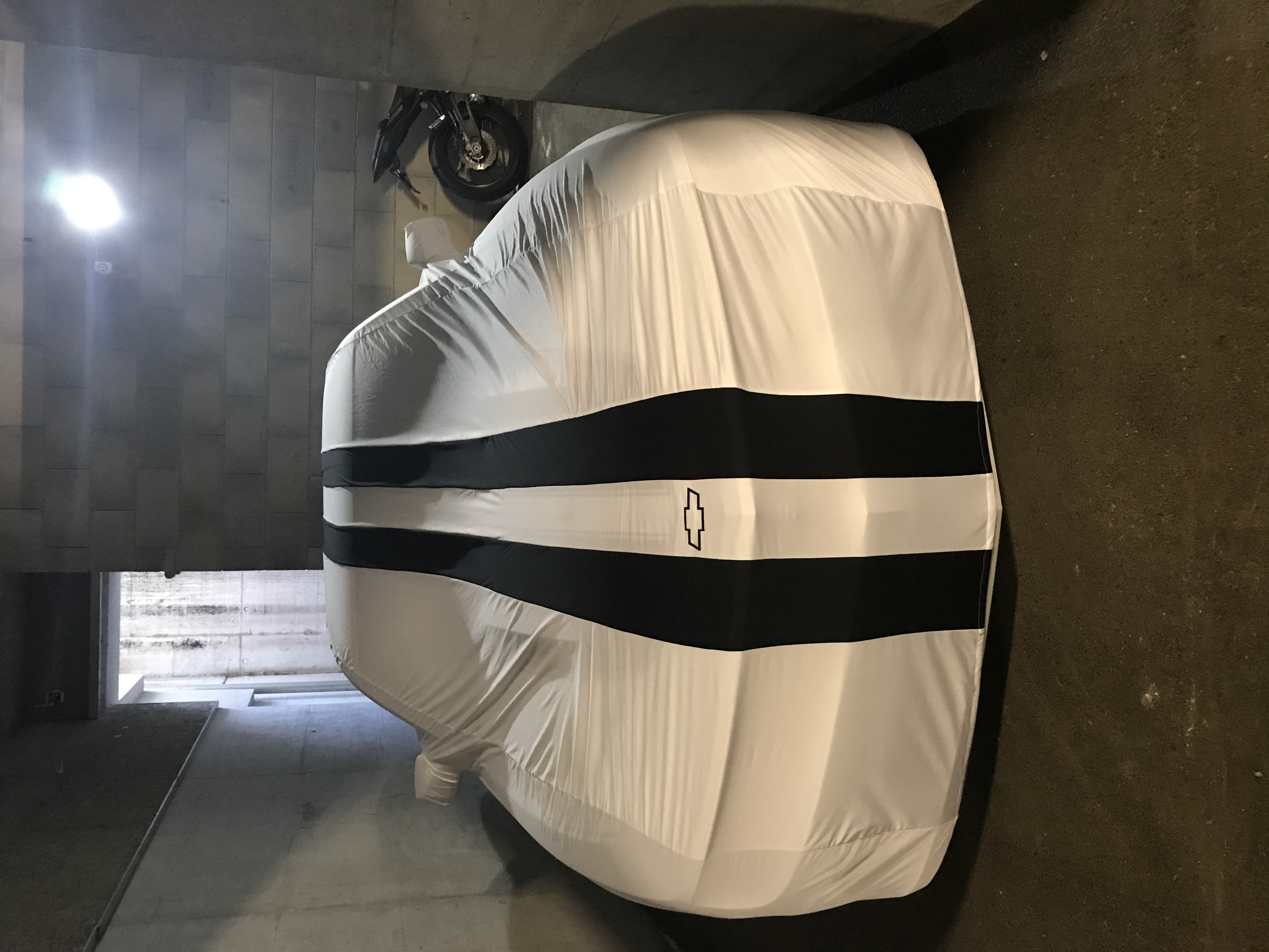 commandée également chez France housse machin chose pour 350 ou 450€, (plus chère d’une centaine d’€ car ils ont rajouté les bandes noires et le logo Chevy, par contre, je leur avait demandé s’ul était possible qu’il y ai une petite "fenêtre" au niveau du rétro pour la Dashcam mais pas possible, housses lavables et fabriquées en Espagne, et la société de livraison livrant vraiment quand ils veulent, au bout d’une semaine que la housse était chez eux, je me suis déplacé jusqu’à leur entrepôt (1h30 aller et autant pour le retour) pour aller la chercher car je partais en vacances le lendemain et je voulais pas la laisser 3 semaines "à poil"...