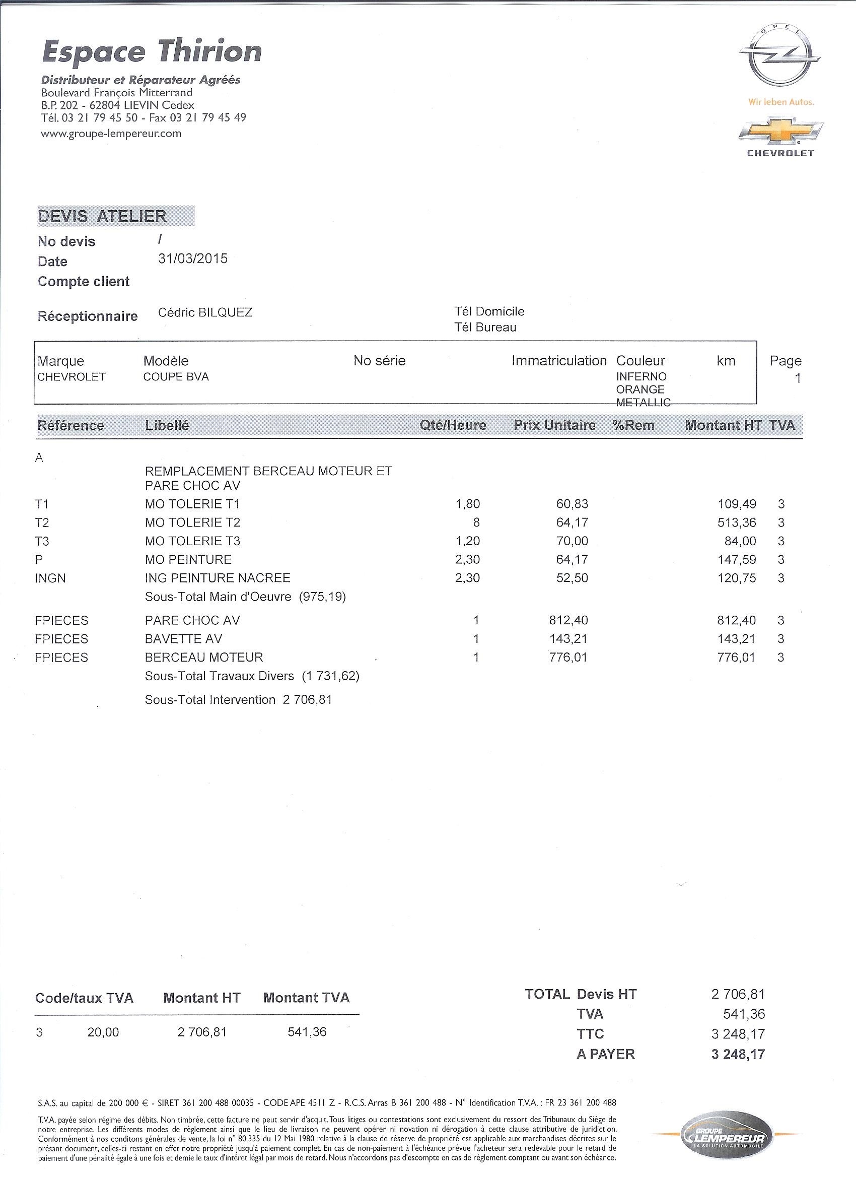 Il faut dire que je trouve la facture drolement salé, il abuse en concession.