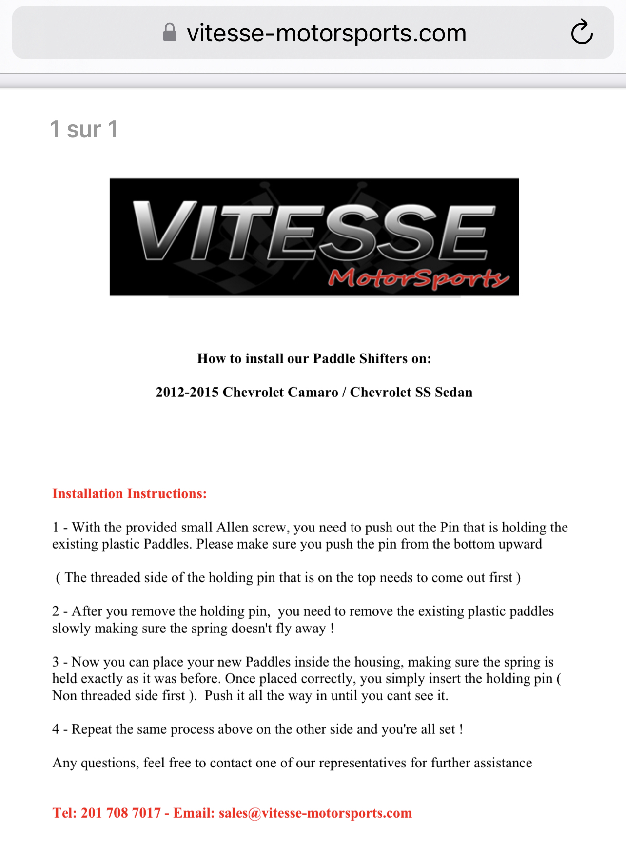 Modele : CAMARO 2014