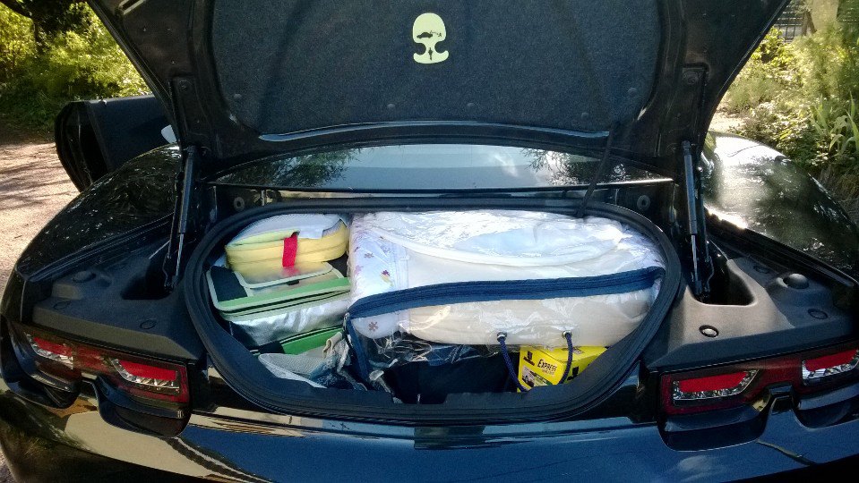 depuis, j'ai eu une deuxième petite fille, j'ai amélioré ma gestion de l'espace du coffre et nous sommes partis en vacances une semaine dans le sud, ce qui est tout fait possible et gérable, question habitabilité.
