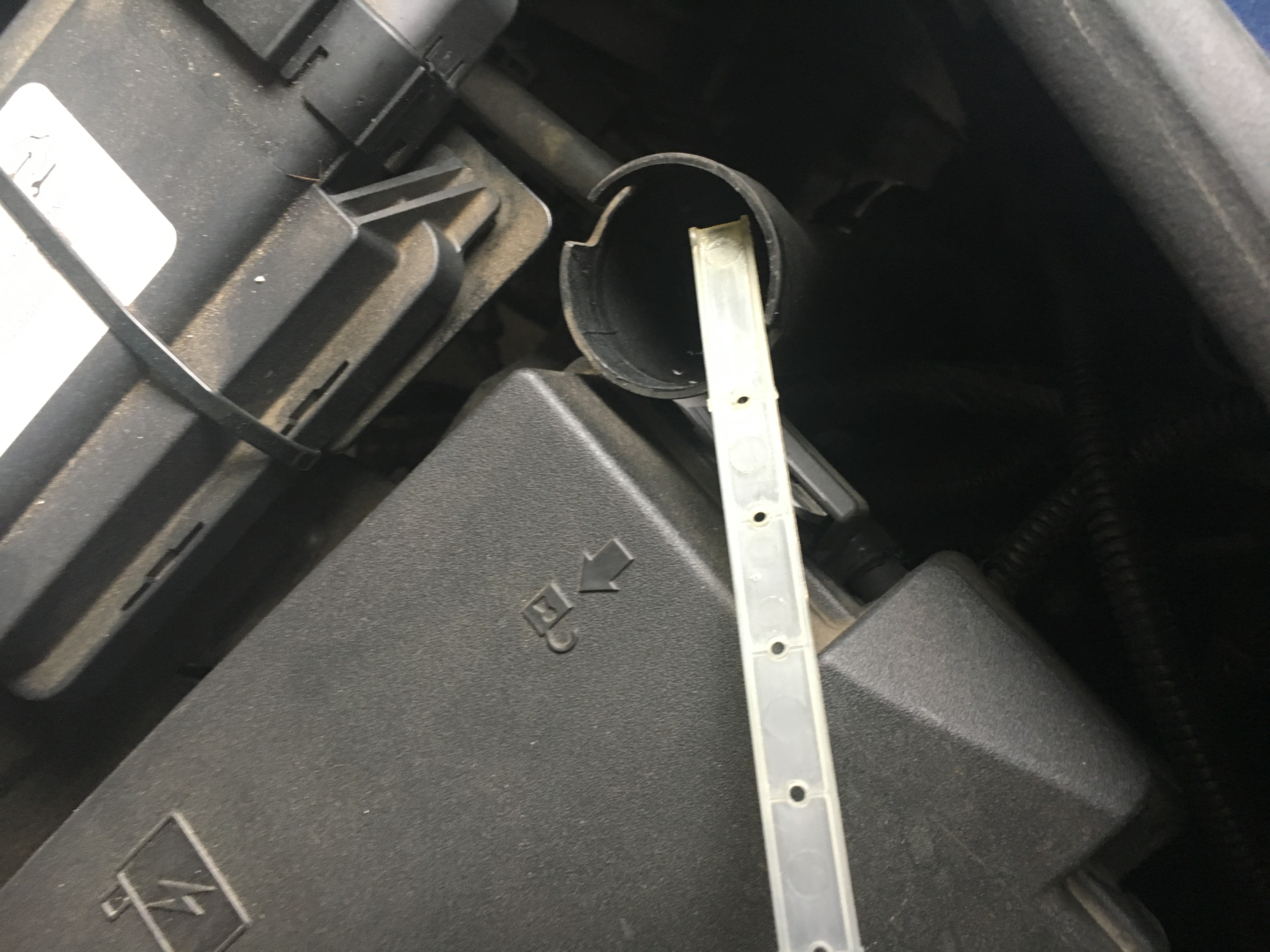 Le liquide n'atteint même pas le premier trou de la languette plastique .