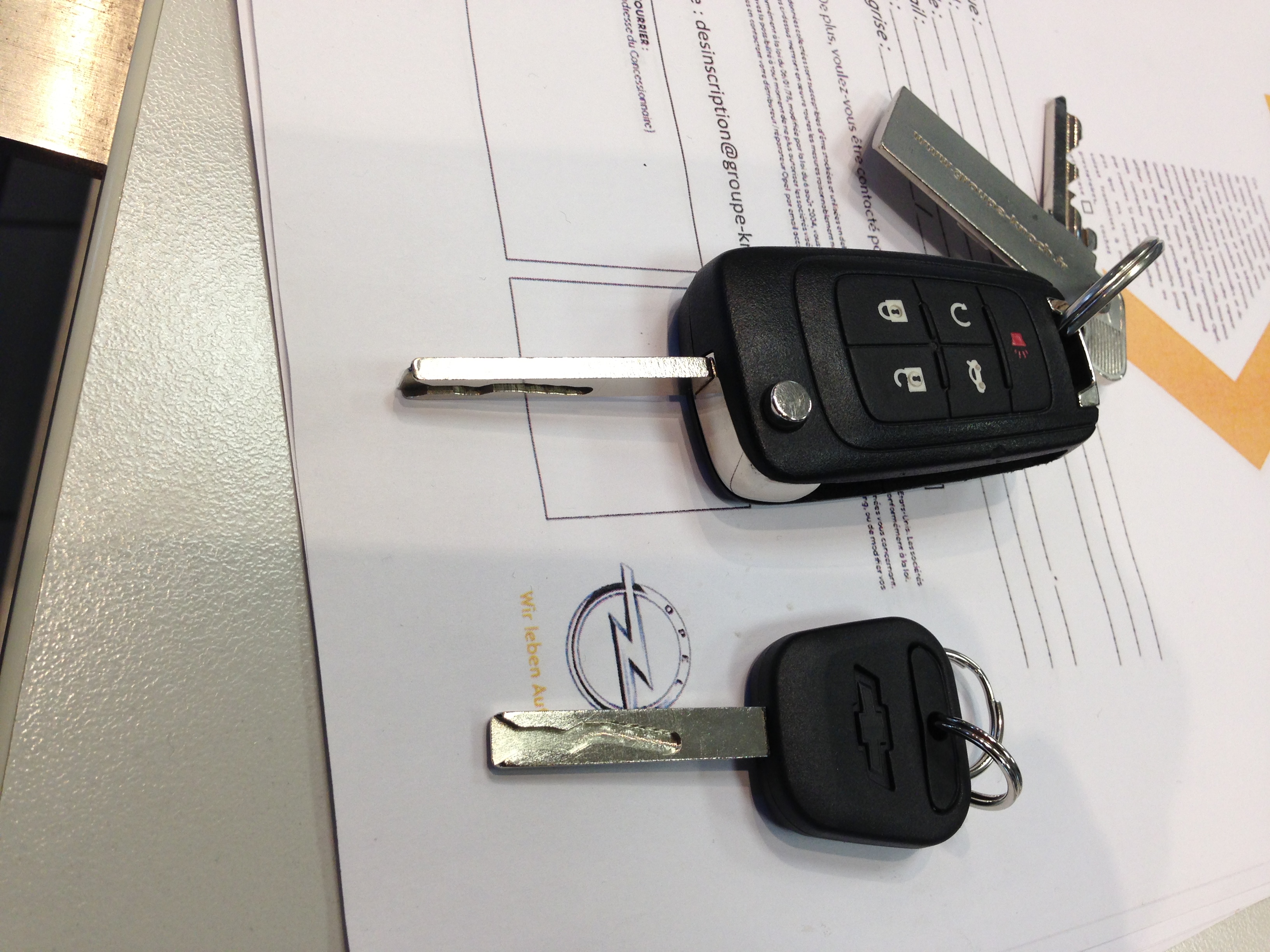 L'opération consiste à enlever la tige de contact mobile à la clé d'origine et de remettre au client une petite clé pour le contact. Ce qui fait que nous aurons 2 clés : celle d'origine sans la tige pour ouvrir les portes, coffre et/ou démarrage à distance et une pour le contact !!! Wait and see ...