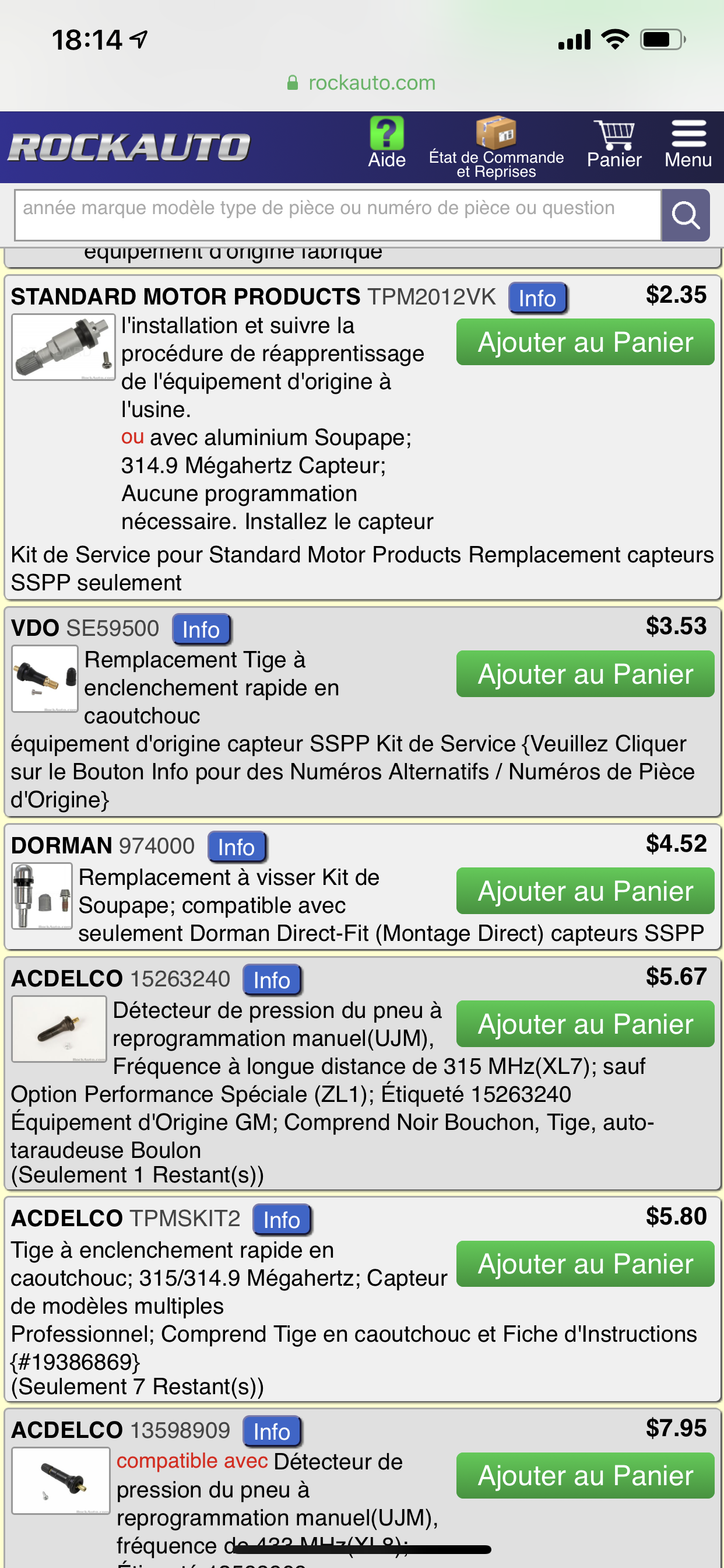 Les versions US, ça a du bon. Quand tu commandes une pièce, ça ne coûte pas un testiculejerrylee a écrit : ↑07 oct. 2019, 18:16 Regarde sur Rockauto, tu les reçois en 1 semaine et il doit y avoir les tiens dans le tas : https://www.rockauto.com/fr/catalog/che ... +kit,12037
