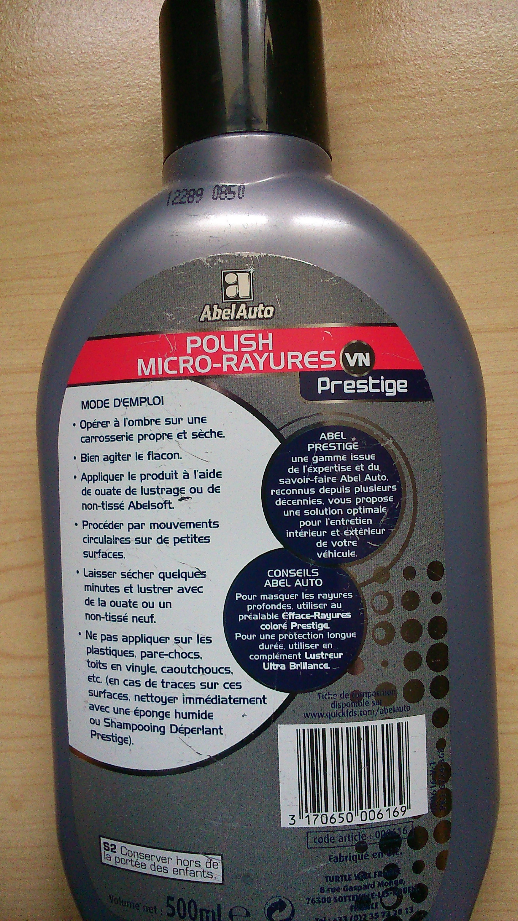 Perso, pour les micro rayures, j'utilise ceci, chez Abel Auto, qui, ma foi, me convient plutôt bien