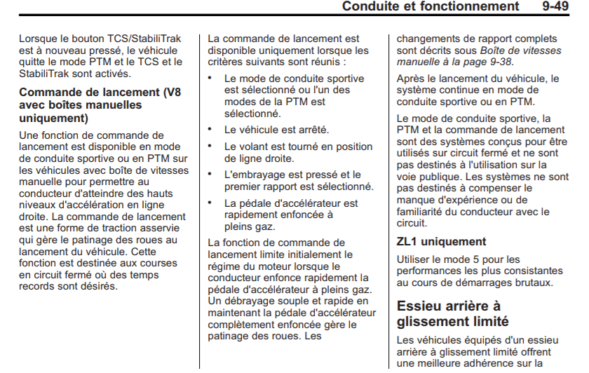 Effectivement mon moteur est un LS3, il y a bien la fonction lunch control qui a l'arrêt, vitesse engagée et padale d'embrayage debrayéé a fond, régule le moteur a 4500 tr env quand la pédale de gaz est au plancher.