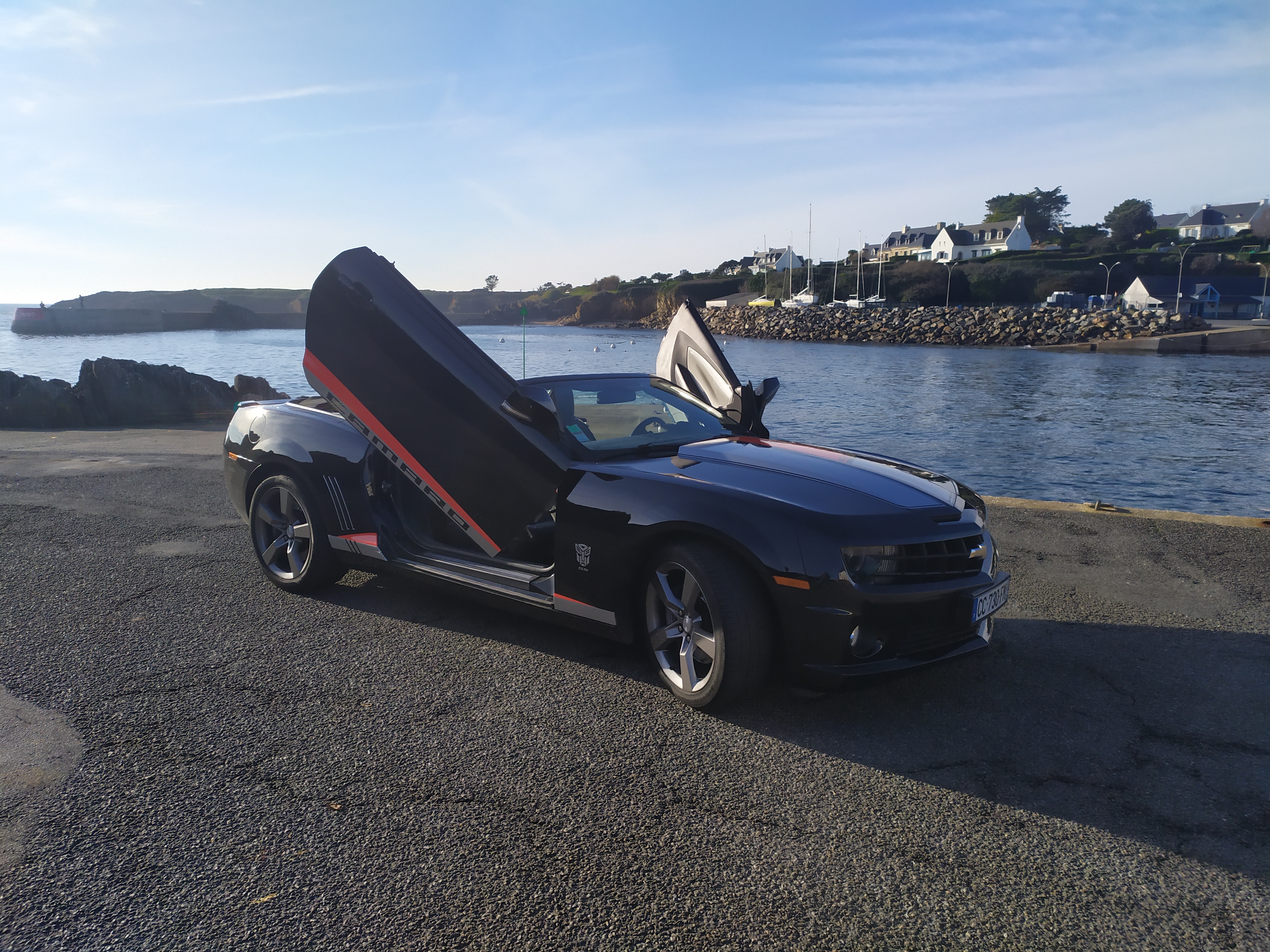 Modele : Coupé BVA 6.2 SS blanche bandes noires "Corsica" 2013, bouclier avant ZL1, optimisation Hartt Racing, K&N Typhoon, Borla S-Type, H&R -4cm, DLW Uros K-S 9.5 et 10.5", Phantom grill.