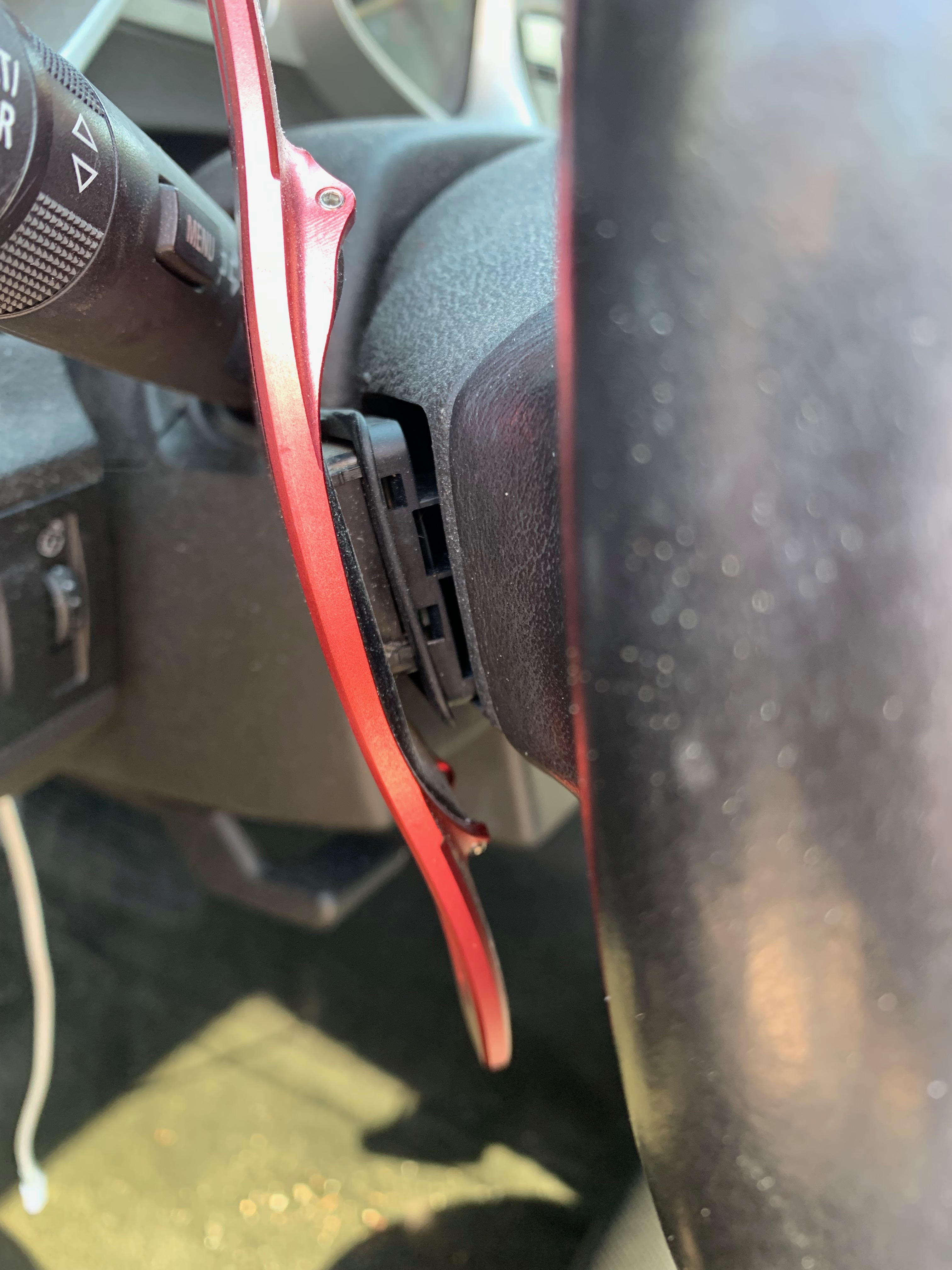 Depuis 2 mois , j'ai la palette gauche qui " branle " . J'ai du donné un coup de genou une fois ou 2 en entrant dans l'habitacle quand le volant est légèrement tourné .